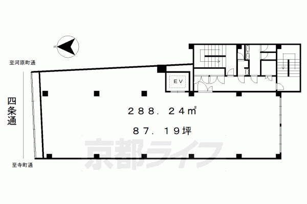 | 備考 | 阪急京都線四条河原町駅より徒歩1分とアクセスも良好です。 本テナントは定期借家契約のテナントとなります。 京都のオフィス向け貸事務所、飲食店や物販店舗向けテナント物件など事業用賃貸の募集・物件探しのご依頼は京都ライフのテナント事業部にお任せください。 京都河原町駅 50m,祇園四条駅 350m |