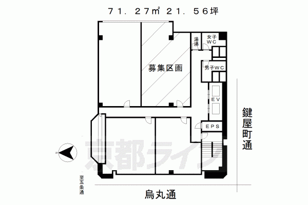 | 備考 | ビジネス拠点に最適です。 JR京都駅へもアクセスも良好で、交通利便性の高いテナントです。 京都のオフィス向け貸事務所、飲食店や物販店舗向けテナント物件など事業用賃貸の募集・物件探しのご依頼は京都ライフのテナント事業部にお任せください。 五条駅 50m,四条駅 900m |